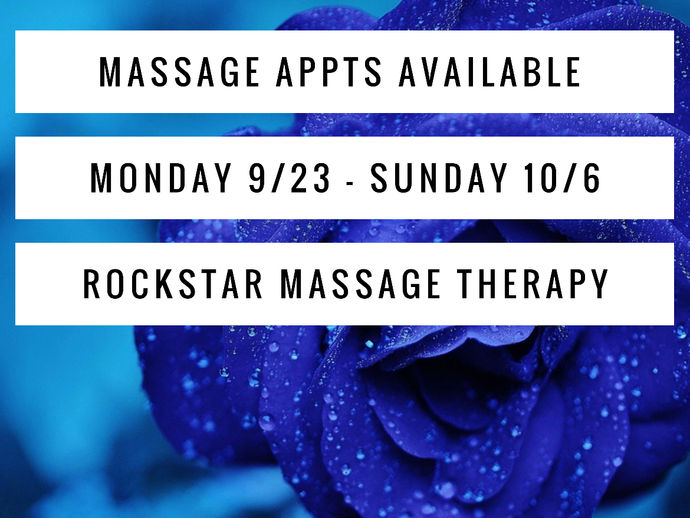Massage Appts Available 10/30 - 11/17 Massage Appointments Available over the next few weeks. Make sure to schedule ahead, as times are...